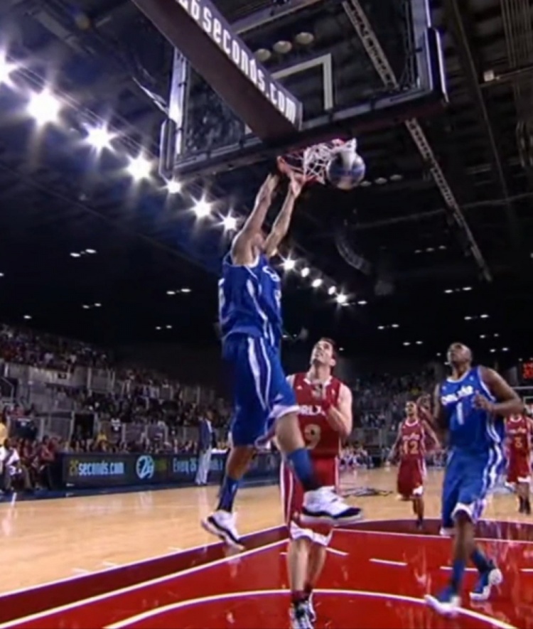 这弹跳什么水平?在2012年NBA名人赛中J.Cole完成双手空接扣篮