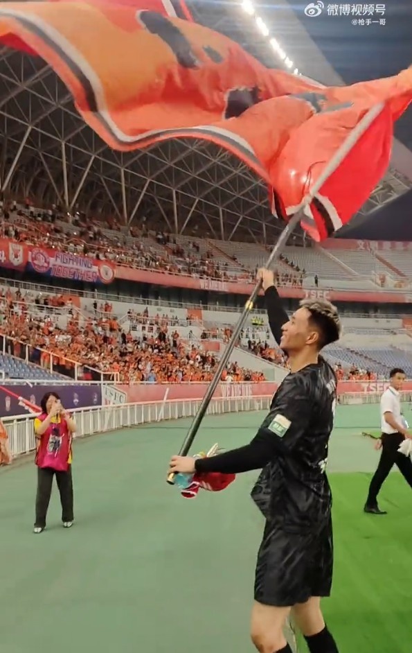 首发打满全场助泰山赢球,于金永赛后挥舞旗帜与球迷互动