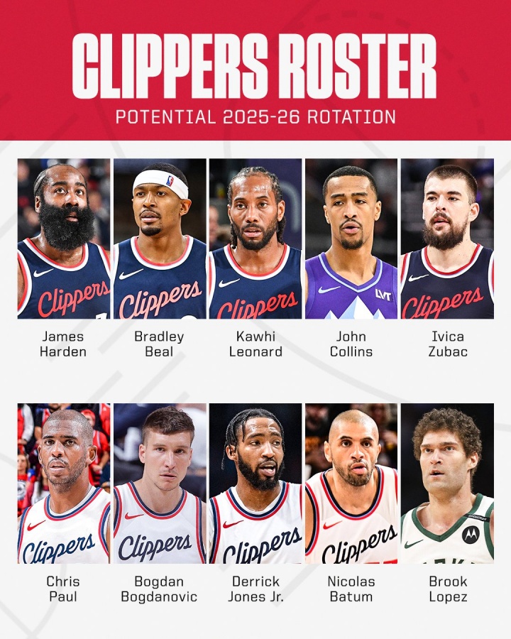 美记Brett Siegel列出快船阵容: