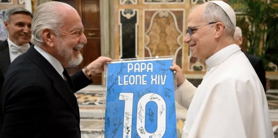 教皇利奥十四世私人接见那不勒斯,德劳伦蒂斯赠与其10号球衣