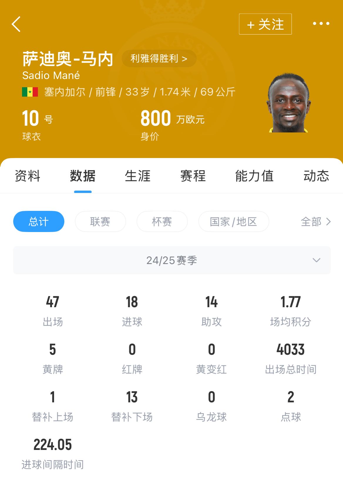 沙特每家俱乐部都有外籍球员数量限制,放走马内可以为利雅得胜利带来引进新援的空间。